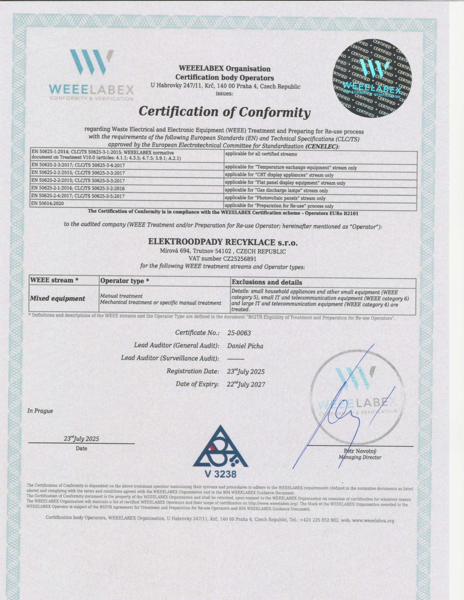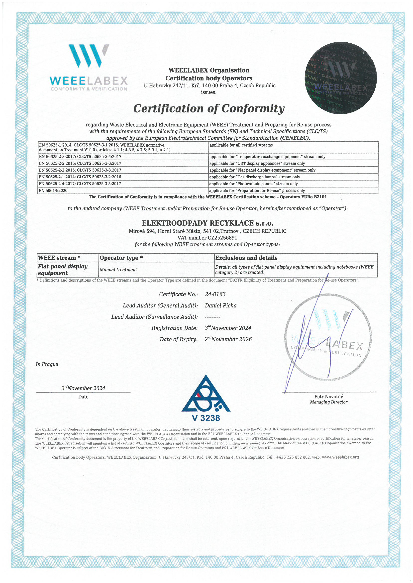 Splňujeme požadavky dle evropských standardů v oblasti zpracování odpadů, řízení kvality a bezpečnosti práce